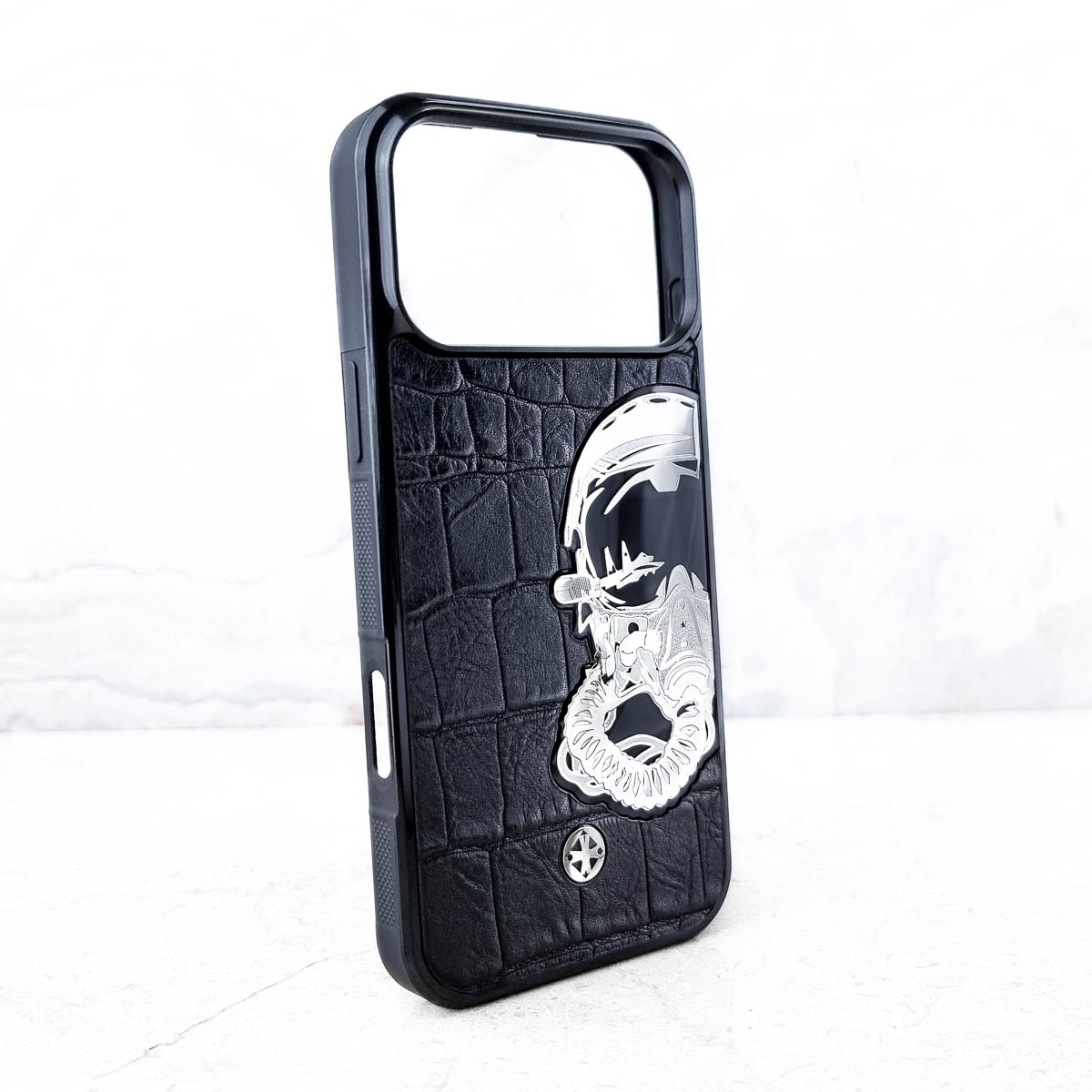 Премиальный чехол из натуральной кожи CROC выделки Италии, c ювелирным сплавом, дизайн которого был разработан в тесном сотрудничестве с @fighter_bomber_ , популярным военным летчиком, который ведёт одноимённый блог с непревзойденной (!) манерой подачи материала.