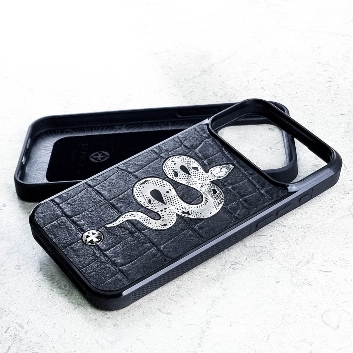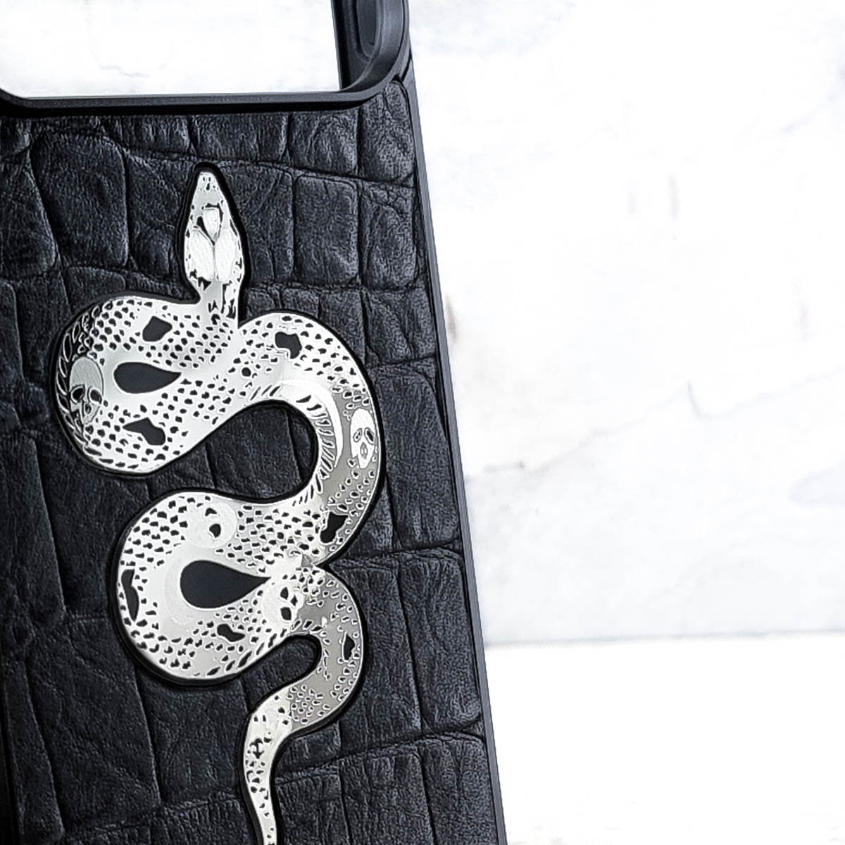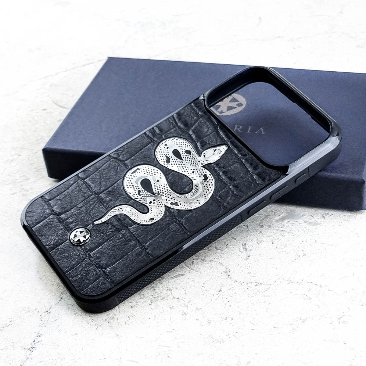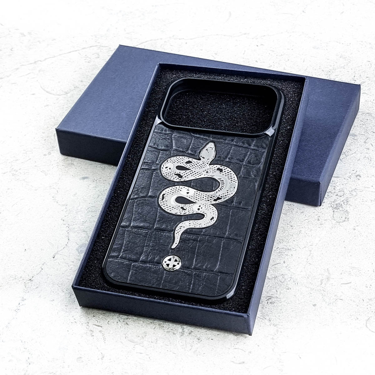 Премиум Чехол для iPhone со змеей - змея из ювелирного сплава, натуральная кожа CROC.